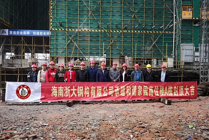 1月6日上午9時(shí)18分,隨著(zhù)最后一根鋼梁吊裝到位,標志著(zhù)和諧家園項目鋼結構主體順利封頂。