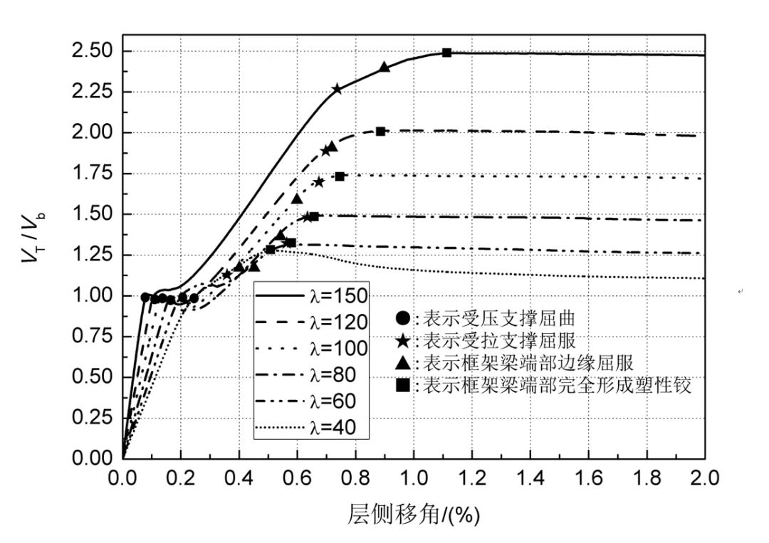 框架和支撐的抗側承載力各占一半時(shí),曲線(xiàn)如圖2所示。
